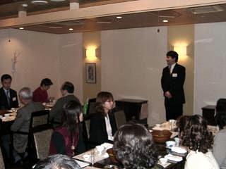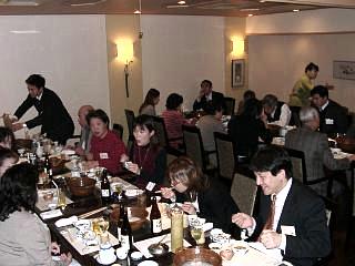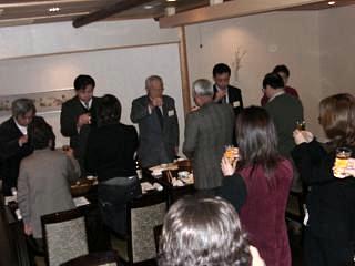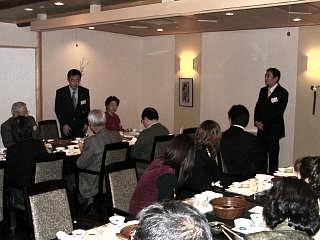 | ●平成17年の新年会を開催しました 日 時 :平成17年1月18日(火)18時30分〜20時30分 場 所 :「梅の花 難波オーキャットモール店」(オーキャットモール5F) 司 会 : 坂本(成)執行役員 挨 拶 : 糸川組合長 乾 杯 : 木村相談役 参加者 :木村・糸川・橋本・川北・角谷・塩川・坂本(成)・ 古賀・中村・坂本(義)・山本(泰)・蒲原・ 山下(楢)・藤井・山本(光)・荻野・山下(悠)・ 森垣 以上組合員、住吉・吉岡 以上協賛会員 水野・植田・国貞・千島・小崎 以上一般参加者 (敬称略) 酉年2005年となり、新年会を“ヘルシーな豆腐料理で人気なお店”「梅の花」にて開催いたしました。 組合員、協賛会員、一般参加者の皆様25名が参加され楽しいひと時を過ごしました。 その後、有志一同20名が同じオーキャット内のサイゼリアでお茶の二次会を行いました。 色んなお話や意見交換等、有意義で楽しい一日となりました。 今回参加出来なかった方、今後とも各種催しを企画していきますので、是非ご参加下さい。 色んな家主さんたちと楽しく語り合いましょう 司会:坂本氏 木村相談役より乾杯の挨拶 |